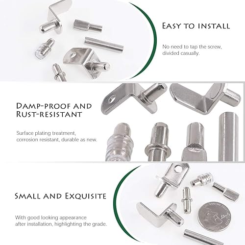 Keadic Regalstifte, 5 mm, vernickelt, mit Kunststoffkappen, für Küchenschränke, Bücherregale, Möbel und mehr