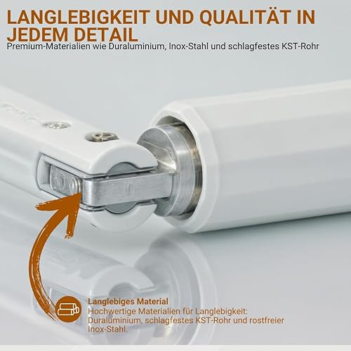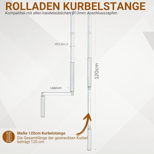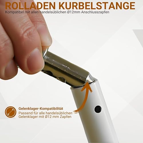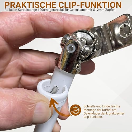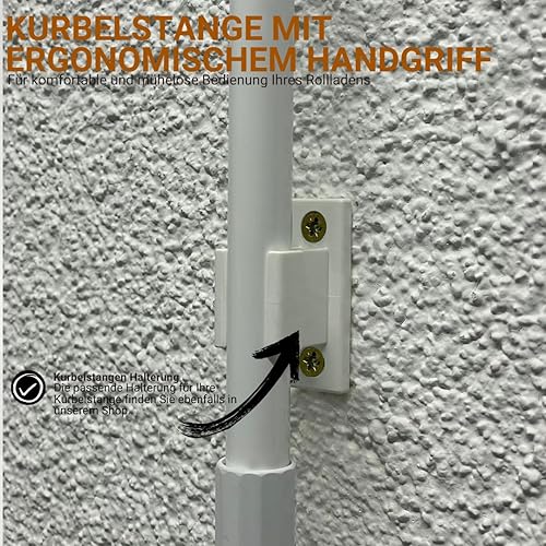 Rolladen Kurbelstange 120cm, Hand-Kurbel für Gelenklager mit Ø12mm Zapfen - Rolladenkurbel rostfreies Aluminium mit ergonomischem Handgriff - Weiß - markiso®