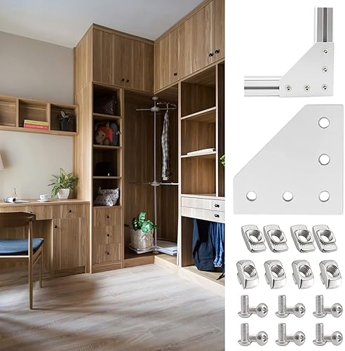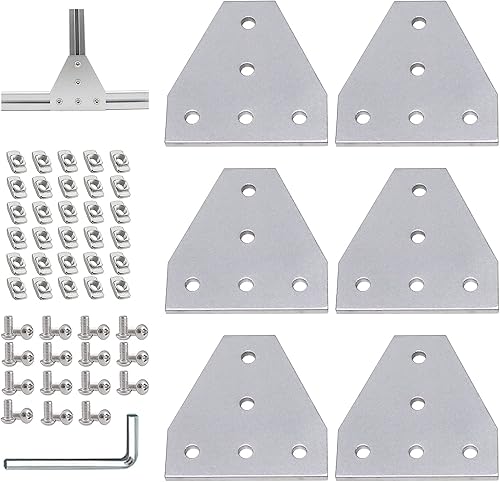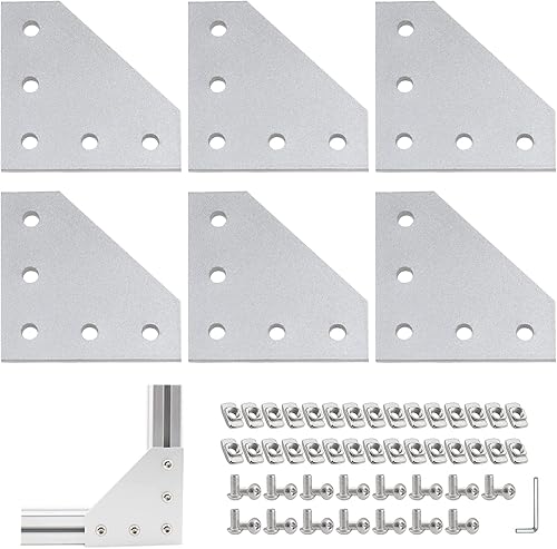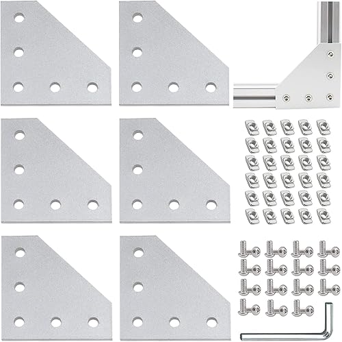 L-Förmige Eckhalterungs Verbindungsplatte 6 Stück Eckhalterungsplattemit M5-T-Muttern+M5-Schrauben+chraubenschlüssel für Standard-Aluminium-Extrusionsprofil mit 6 mm Schlitz 2020