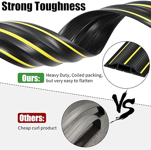 Bodenkabelschutz, 2 m Bodenkabelabdeckungen, Kabelabdeckungen für Drähte, Boden, Gummi-Kabelschutz für den Außenbereich und 3 Kabelkanäle