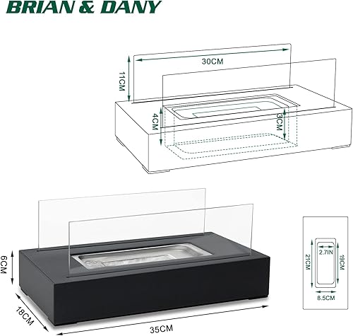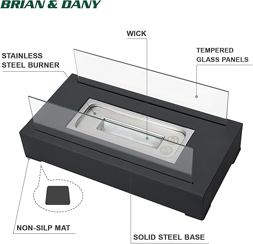 BRIAN & DANY Tischkamin für Indoor und Outdoor, Bioethanol Tischfeuer, Bio Ethanol Kamin für Garten Balkon Deko