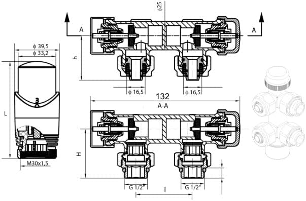 GOSHE Hahnblock Heizkörper Chrom Eck Multiblock Mittelanschluss Ventilhahnblock Thermostatregler Anschlussarmatur
