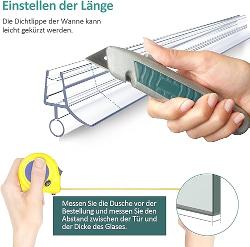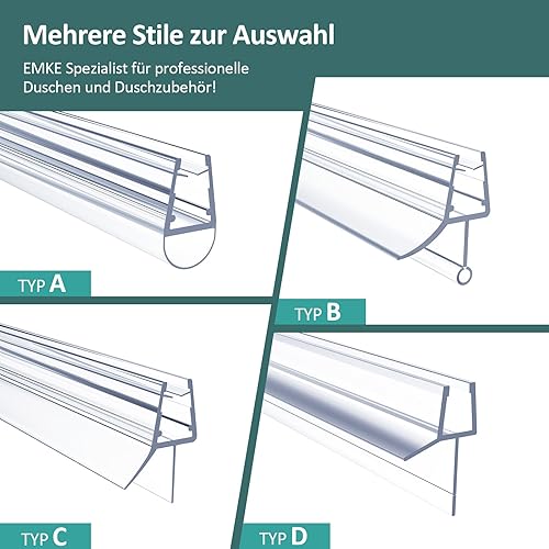 EMKE Ersatzdichtung Wasserabweiser Duschdichtung Schwallschutz Duschkabine Bad 4-6mm Glas 1000mm