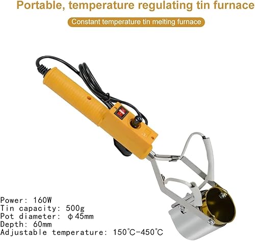 BDJSN Tragbarer Elektrischer Zinnschmelzofen, 150–450 ℃ Einstellbarer Bleischmelztiegel, 1,1 Lbs/3,3 Lbs/6,6 Lbs Tragbarer Bleischmelzofen Für Angelgewichtsformen Und Metallanhänger