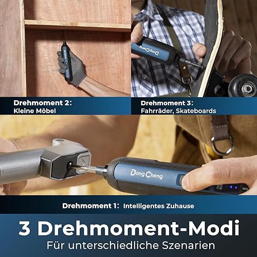 DongCheng Mini Akkuschrauber, 4V Akkuschrauber klein, 2000 mAh Lithium-Ionen-Akku, 3 Drehmoment, max. 5Nm, LED-Licht, 8-tlg. S2-Stahl Bits, ideal für Heimwerken und Reparaturen