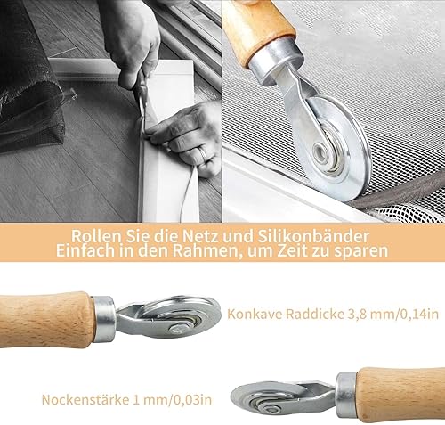 Galerie SV Kedereinzieher Siebfenster Spline, Kederwerkzeug Fliegengitter, Werkzeug Einzieher Einroller mit 15m x 5mm Gummi Kederband für Fliegengitter Insektenschutz Ersatzteil
