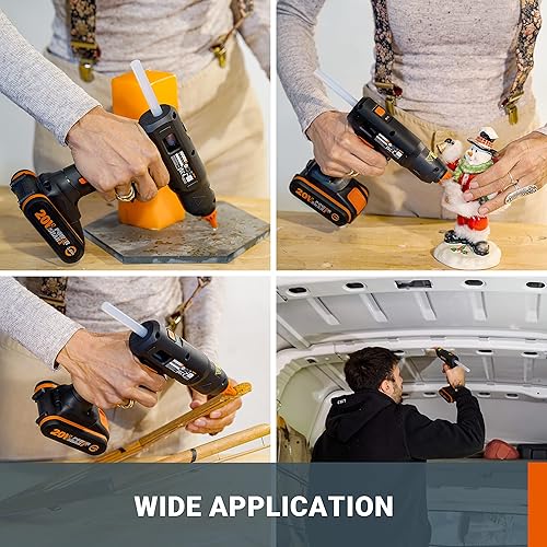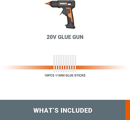 WORX 18V (20V MAX) Akku-Heißklebepistole WX045.9, PowerShare, 60W, MAX 200℃, Anti-Tropf, ideal für Heimwerker, Möbelmontage, Hausreparatur, mit 10*Klebesticks, ohne Akku & Ladegerät