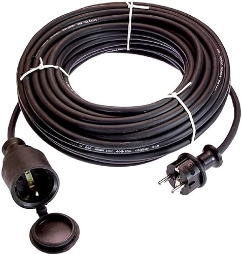 as - Schwabe Gummi-Verlängerungsleitung, 10 m H05RR-F 3G1,5 Kabel mit Schutzkontaktstecker und Schutzkontaktkupplung inkl. Schutzkappe, Verlängerungskabel 230V, 16A, IP44, Schwarz, 60310