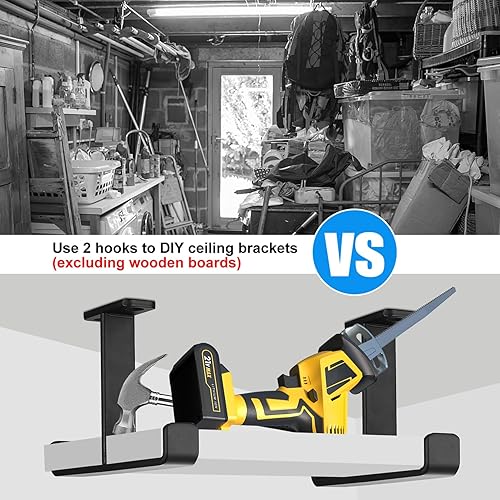 HAOCHEN Deckenhaken Garage Schwerlasthaken, 2er Set Garagen Decken Aufbewahrunghaken, Fahrrad Wandhalterung Deckenhalterung für Skihalterung Wandhaken Leiterhaken, Autoreifen, Werkzeugen, bis 25 kg
