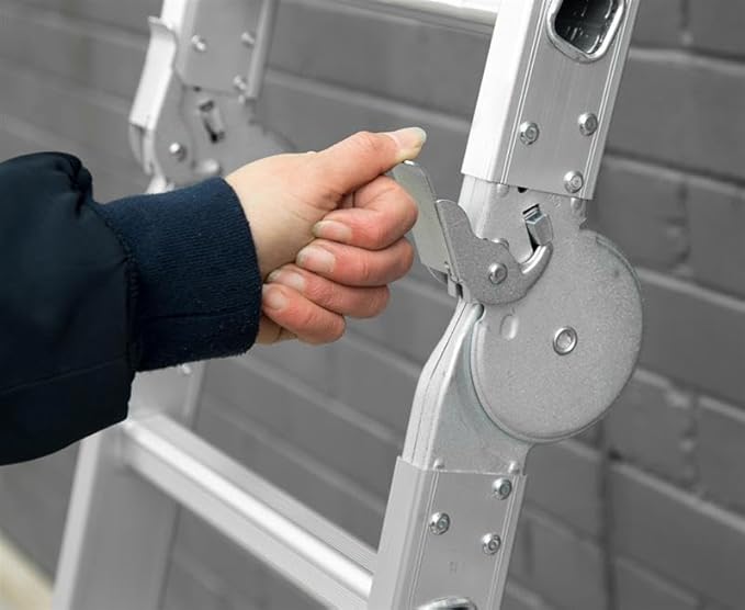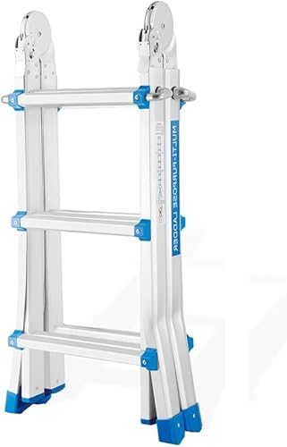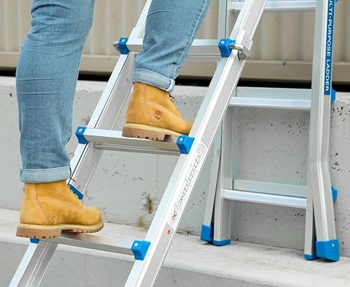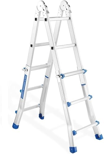 TREPPE Gelenkleiter, faltbar, teleskopisch, multifunktional, Aluminium, 4 x 3 Stufen, 2,86 m