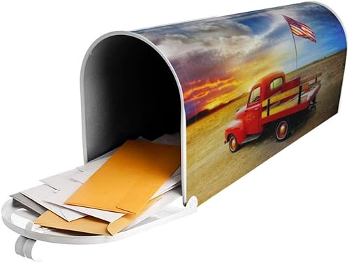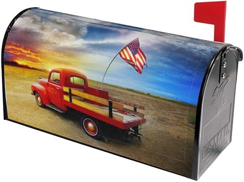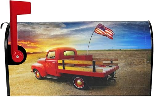Roter Vintage-Pickup-Truck mit amerikanischer Flagge Briefkastenabdeckungen Magnetische Briefkastenhüllen Postbriefkastenabdeckung Standardübergröße 21 x 18 Mailwrap Garden Home Decor