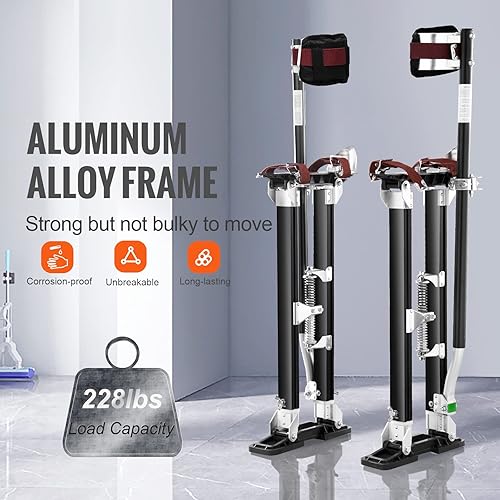 VEVOR Aluminiumstelzen Deckenbau 24''-40'' Höhenverstellbar Arbeitsstelzen Trockenbau 103kg Belastbarkeit Malerstelzen 27-29cm Fußgröße Schwarz Malerarbeit Heimdekoration Baumschnitt Elektroarbeit