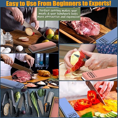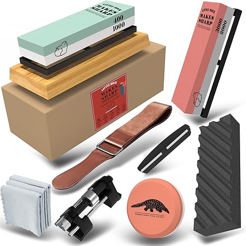 Schleifstein Messer Wetzstein, DAMAFLAWA 400/1000 3000/8000 Körnung mit Rund Abziehstein Anti Rutsch Basis, Abflachstein Messerschleifer (14 Stücke)