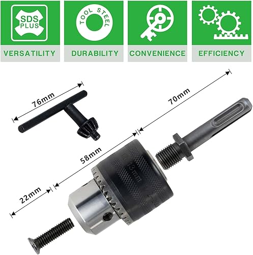 GARHWAL Zahnkranzbohrfutter 1,5-13 mm, 1/2-20UNF, Zubehör für Bohrhämmer, inklusive SDS-Plus Adapter Aufnahme, aus hochwertigem Vollmetall gefertigt und ideal für den harten Einsatz geeignet