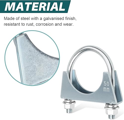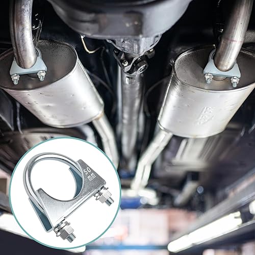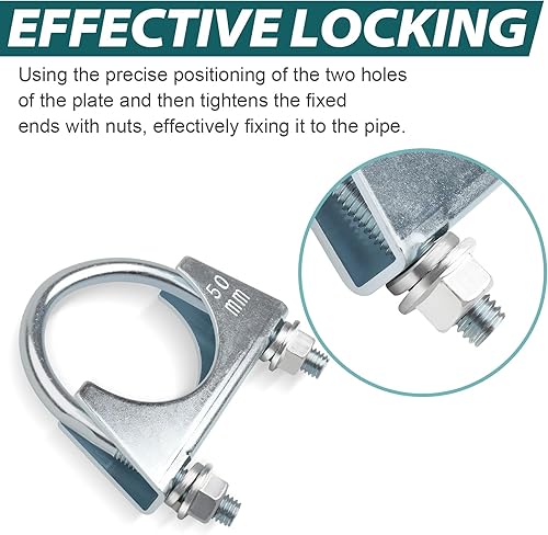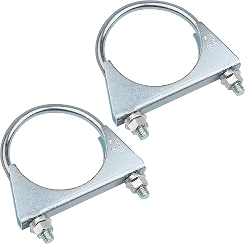 Yeepeo 2 Stück Bügelschelle, 70mm Auspuffschelle Verzinkter Stahl Rohrschellen Runde Rohrbügelschelle mit Mutter Platte U-Bolzen für Rohrverbindungen