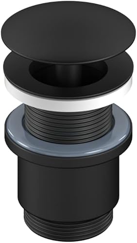 CHRIS BERGEN | Ablaufgarnitur nicht verschließbar | Ablaufventil für Waschbecken ohne Überlauf in Chrom und Schwarz matt (Schwarz matt)
