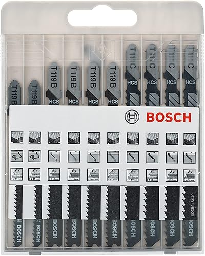 Bosch Stichsäge PST 900 PEL (620 Watt, Schnitttiefe 90 mm, im Kunststoffkoffer), Testnote: Testsieger (Magazin: Heimwerker Praxis) & Professional 10tlg. Stichsägeblatt Set Basic for Wood Schwarz