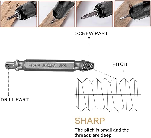 Damaged Screw Extractor Kit 6pcs Noosverl Schraubenausdreher Set mit 6 Stück, Entferner Extraktor zum Entfernen beschädigter abgenutzter Schrauben hergestellt aus HSS