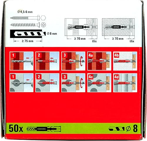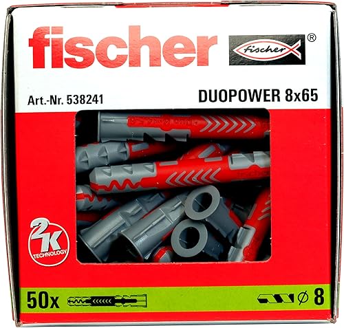 fischer DuoPower 8 x 65, Universaldübel, leistungsstarker 2-Komponenten-Dübel, Kunststoffdübel zur Befestigung in Beton, Ziegeln, Stein, Gipsbauplatten uvm., ohne Schrauben, 50 Stück