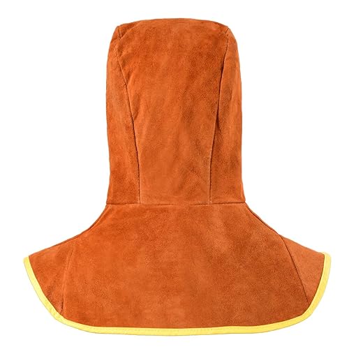 QeeLink Schweißhaube - Gespaltete Rindsleder Schweißhelm mit Nacken Schulterabdeckung -Kopfschutz, Braun Schweißerkappe