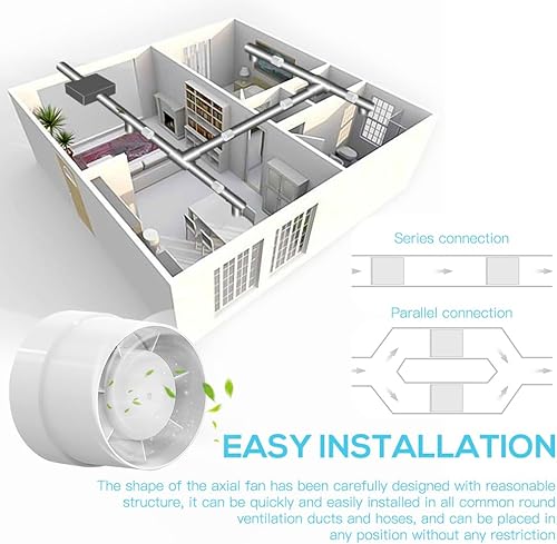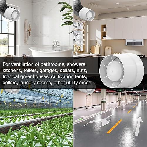 ZOYDP Kanal Rohrventilator 100mm, Abluftventilator 100mm, 107m³/h, Inline-Abluftventilator Rohrlüfter mit 50 cm Netzkabel, Rauchabzug Kanalventilator, Leise Hitzebeständig Lüfter für Bad, WC, Küche