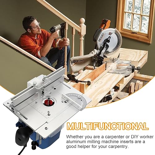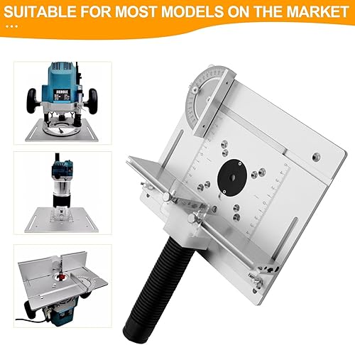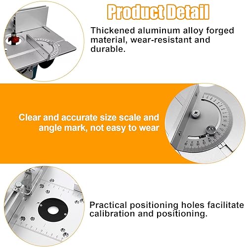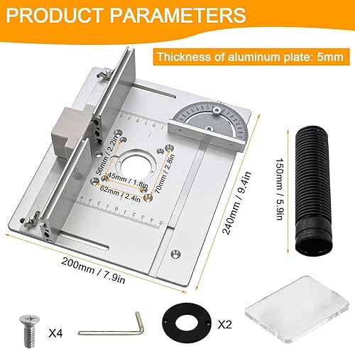 Set mit 3 Frästisch Einlegeplatten, Aluminiumlegierung, Frästisch Einlegeplatte für Oberfräsen, Router Table Insert Plate, Silver Fräsplatte Gravur-Hilfswerkzeug mit Gehrungslehre