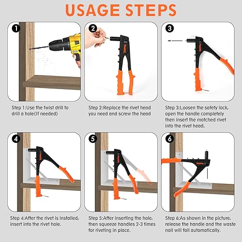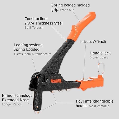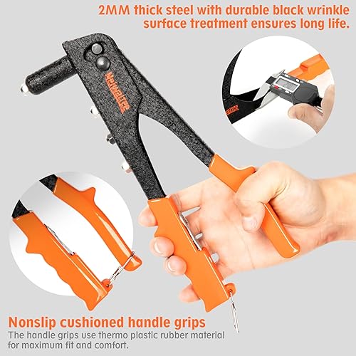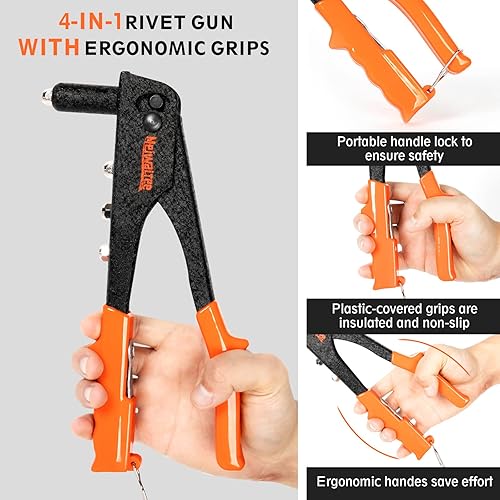 Meiwaltee Blindnietzange Set 4 - in -1, Nietzange Set Mit 200 Nieten in 4 Größen 2,4 MM -3,2 MM - 4,0 MM - 4,8 MM, Langlebig und geeignet für Metallarbeiten, Automotive und Andere Gängige DIY-Projekte