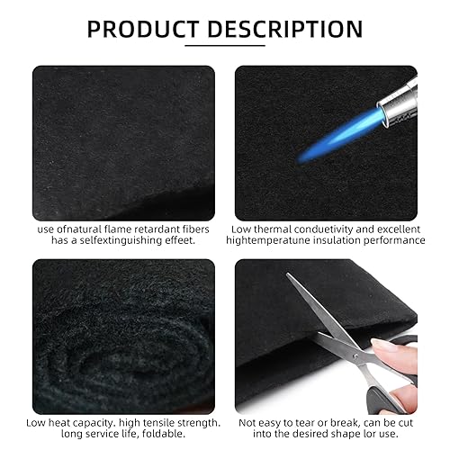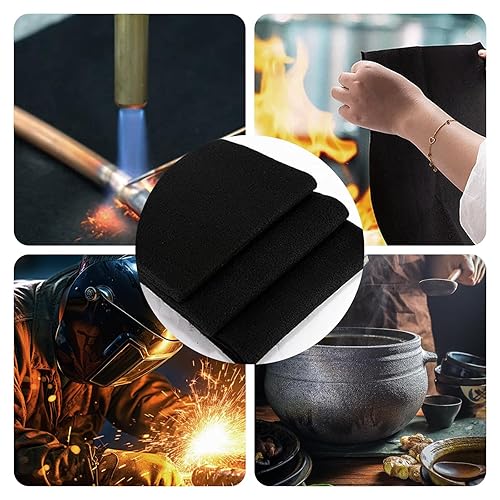 HTTYHT Feuerfeste Unterlage 60x60 cm Hitzebeständigkeit Brandschutzmatte 5mm Carbonfilz Feuerschutzmatte Lötmatte als Feuerfeste Matte mit Schere für Gasgrill Bodenschutz(Schwarz)