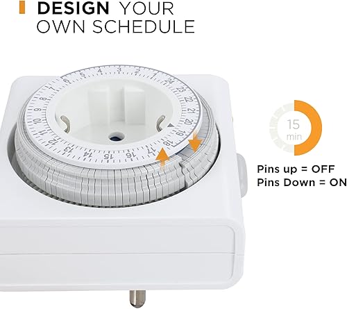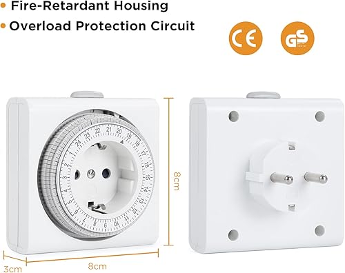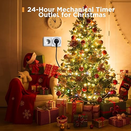 G-Homa Mechanische Zeitschaltuhr Steckdose, Analoge Zeitschaltuhr für Innenbereich mit 96 Segmenten 15 min Schaltintervall, Täglicher EIN-/Aus-Zyklus, für Weihnachtsdeko, Kindersicherung