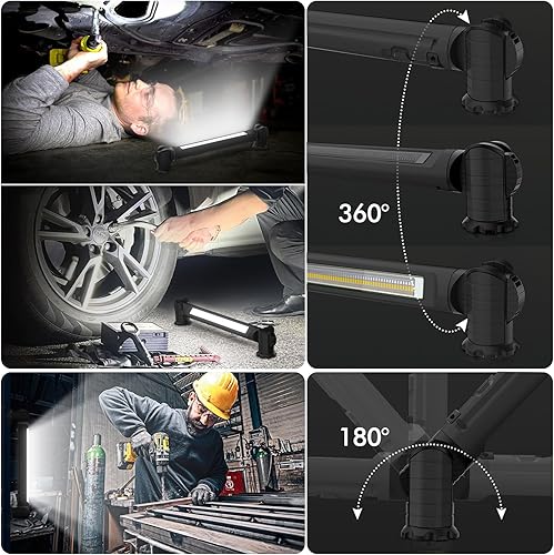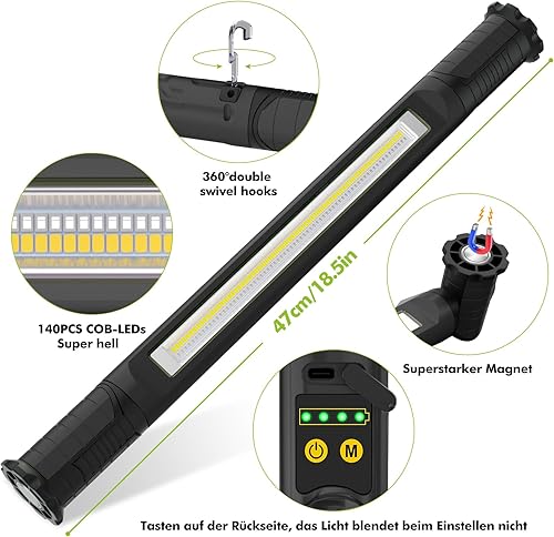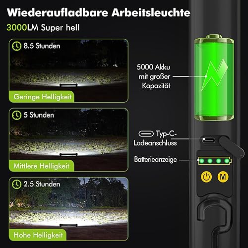 MEIKEE Arbeitsleuchte, 3000LM 3 Helligkeiten 6 Lichtmodi, Werkstattlampe Mit Magnet und Haken, LED Akku Strahler Wiederaufladbare Baustrahler Camping, Garage, Baustelle, Werkstatt, Notfall