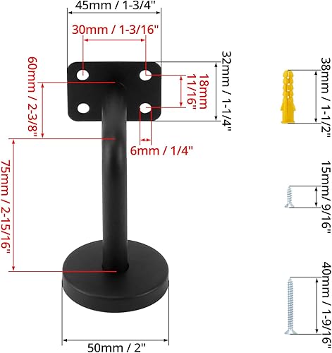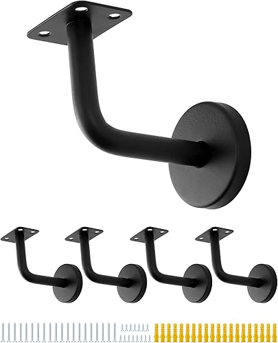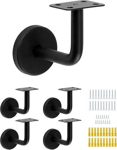QWORK® 5 Stück Edelstahl Handlaufhalterung Handlaufhalter - Schwarz - 60x80 mm Flach