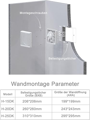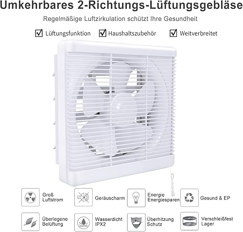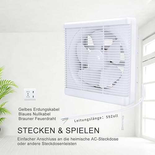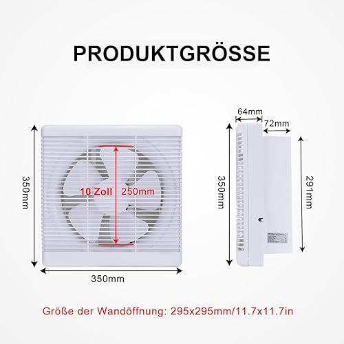 HUGOOME Abluftventilator 800m³/h Ø 250mm,2 Richtungen umkehrbar Starker Luftstrom Wandmontierte Ventilatoren,verwendet für Lüftungsgebläse für Küche, Bad,Loftfenster und Keller 10 Zoll (Kein Stecker)