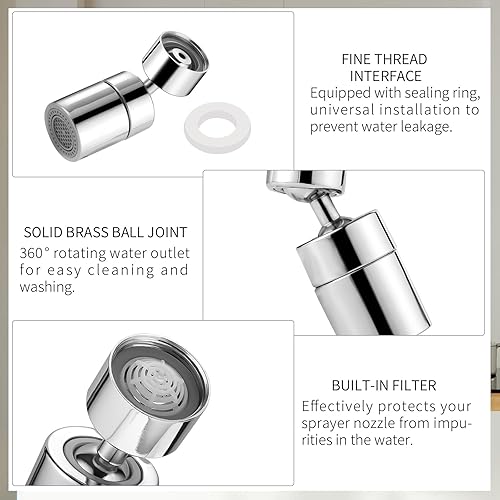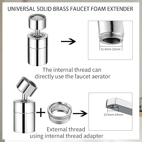 360° Pivotant Aérateur de Robinet, M22/M24 Mousseur Robinet Economie Eau Extension Robinet Filtre Embout Robinet Cuisine Réglable Multifonctionnel Pulvérisateur