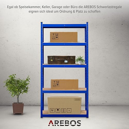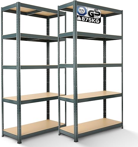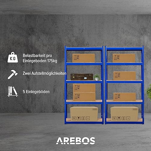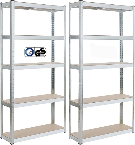 Arebos Schwerlastregal 2er Set | 180x90x30cm | 875kg Tragkraft | 5 MDF-Platten | Einfache Montage durch Stecksystem Regal Lagerregal Kellerregal Steckregal Werkstattregal | verzinkt
