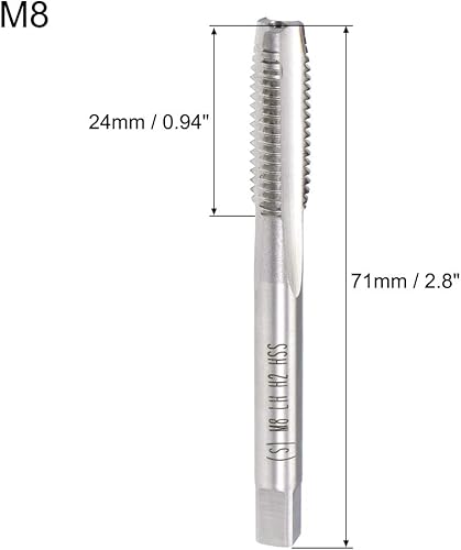 sourcing map Metrischer Maschinengewindebohrer Linksgewinde H2 Schnellarbeitsstahl M8x1,25