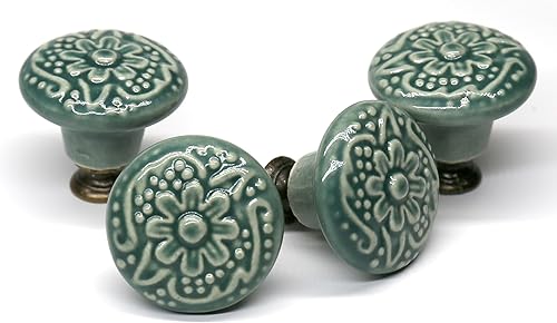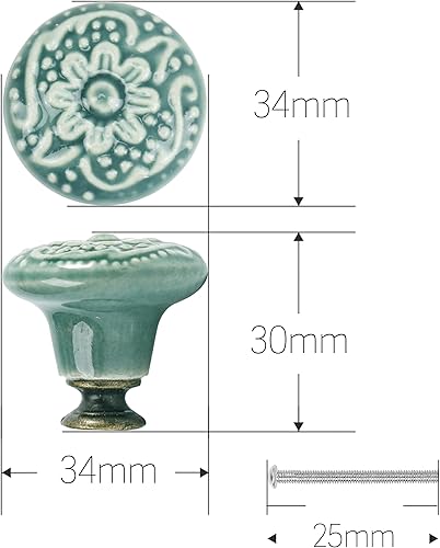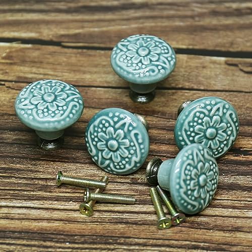Auped 12 Möbelknöpfe im Vintage-Stil 34 mmfor Kitchen Cabinet Vintage Drawer Knobs Retro Furniture Knobs Flower Design Drawer Knobs for Furniture Drawer Cabinet (Grün)