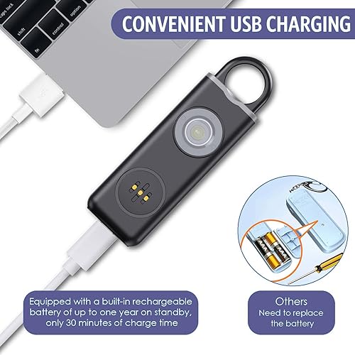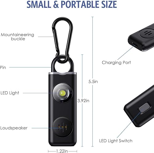 OQIMAX Persönlicher Alarm, 130dB Sirene Taschenalarm mit LED Signalleuchte, Type-C Wiederaufladbar Alarm Schlüsselanhänger für Frauen, Sicherheitsalarm Taschenalarm für Frauen/Kinder/Senioren