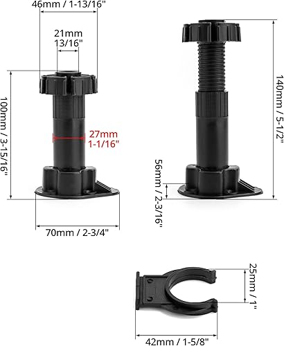 QWORK® 20 Stück Möbelfüße Verstellbare Füße, stellfüße küche, küchenfüße, mit 10 Stück Sockelclips, erweiterte Reichweite: 100–120 mm