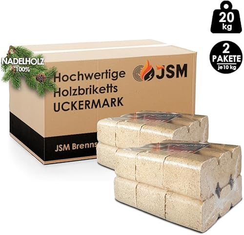 JSM-Brennholz - Uckermark Holzbriketts - 2 Pakete, 6 Briketts je Paket