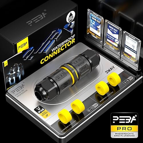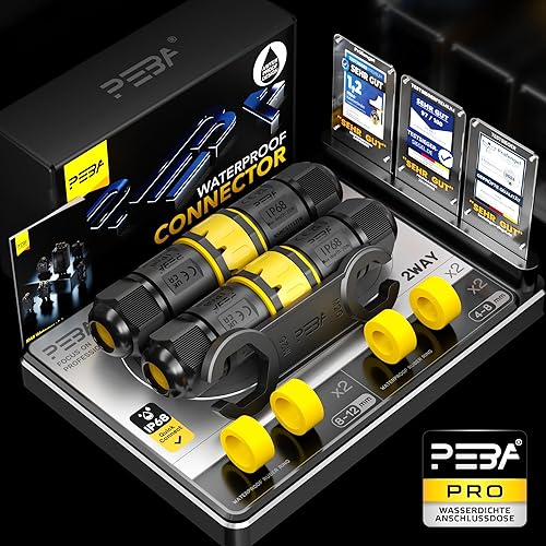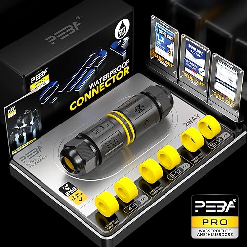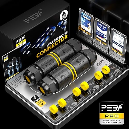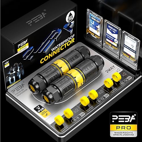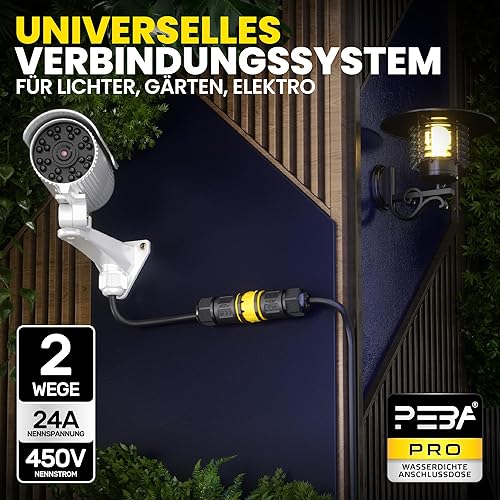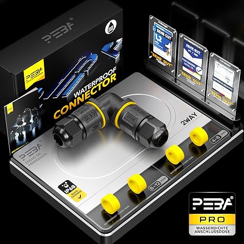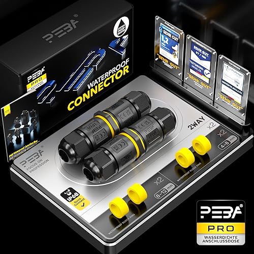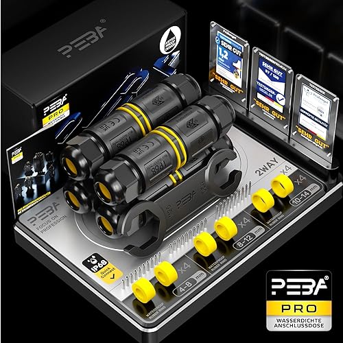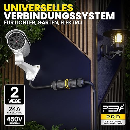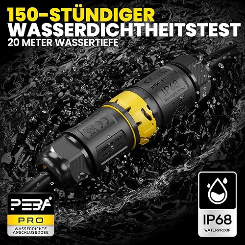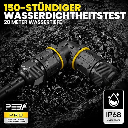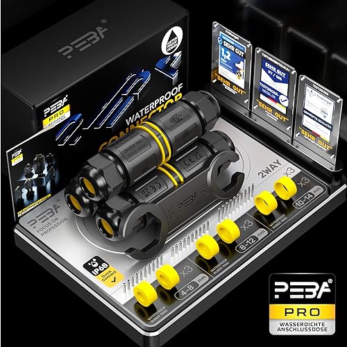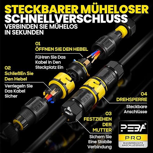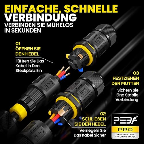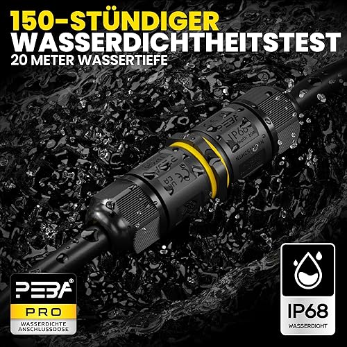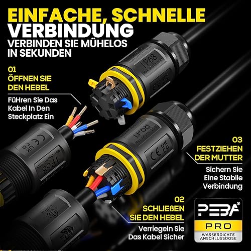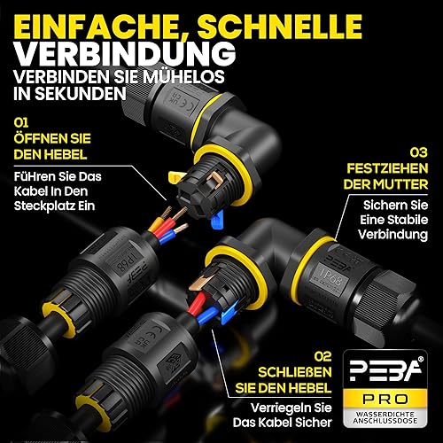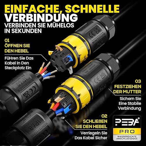 PEBA Kabelverbinder Wasserdicht 3 polig, IP68 Wasserdichte Kabelverbinder 4-12mm Kabeldurchmesser, Verteilerdose außen, 3-Leiter, Verbindungsklemme mit Hebel für Outdoor, 2 Stück Abzweigdose Schwarz