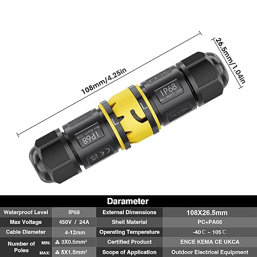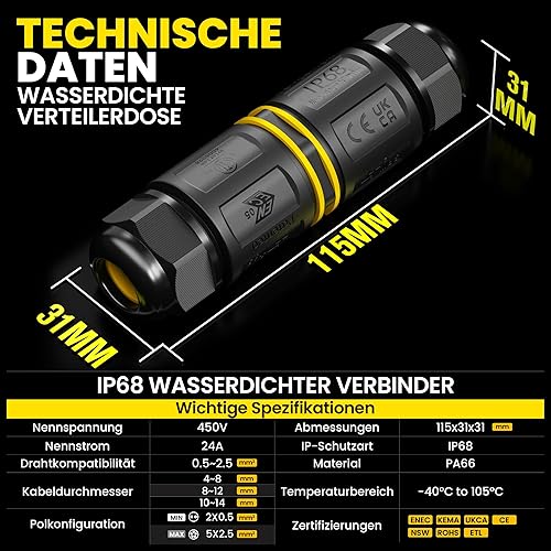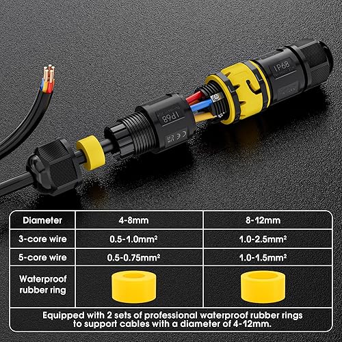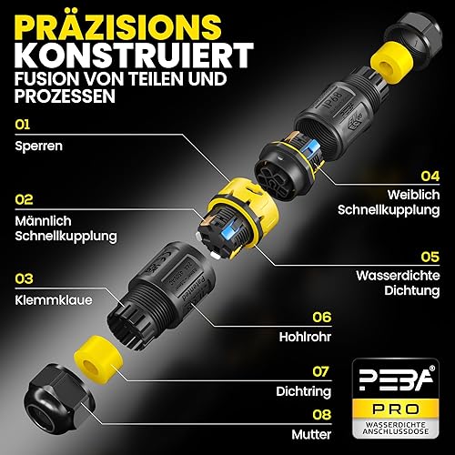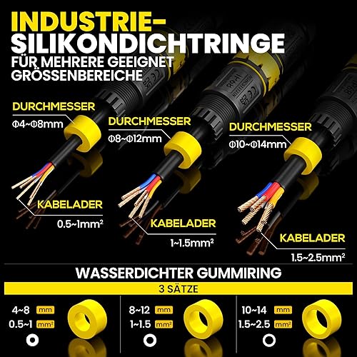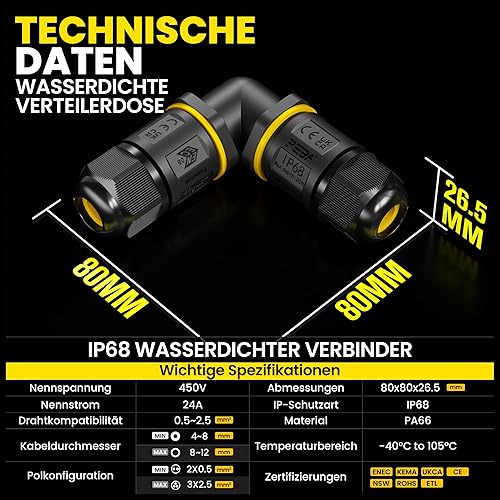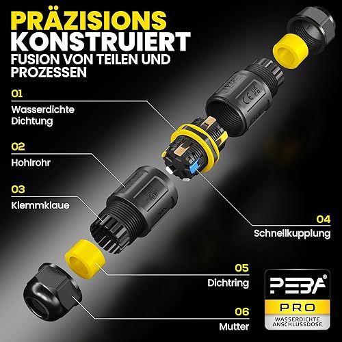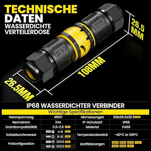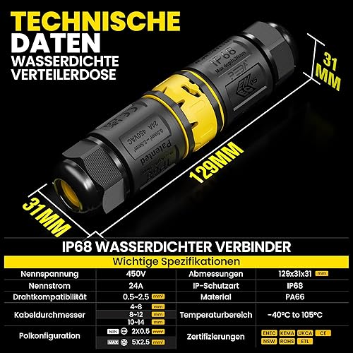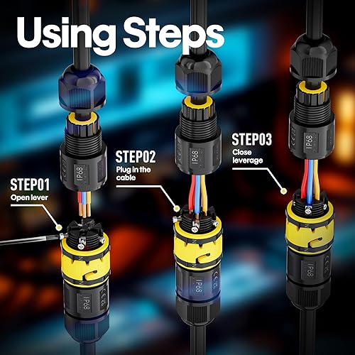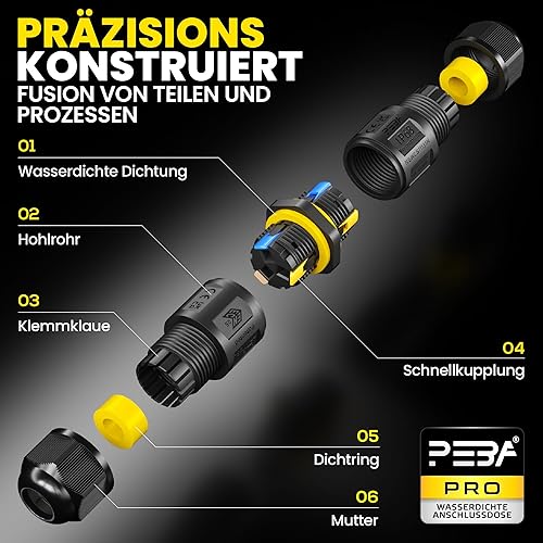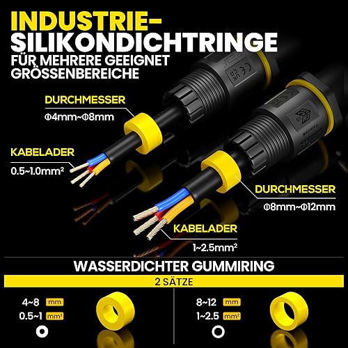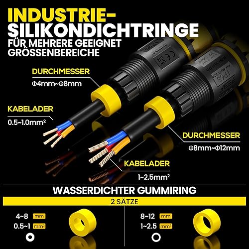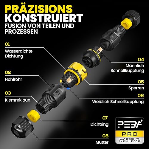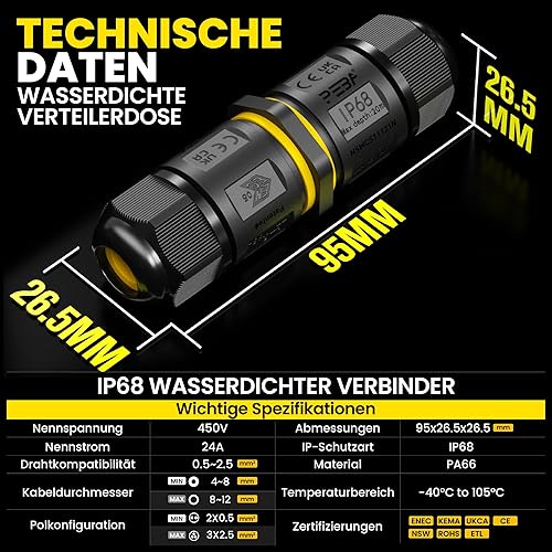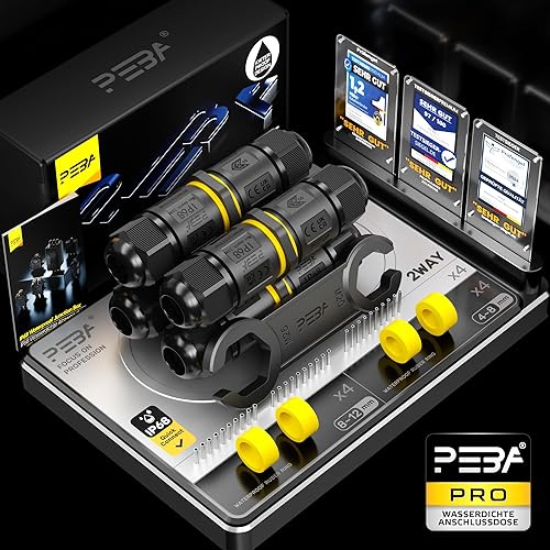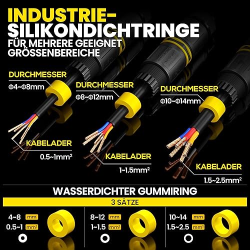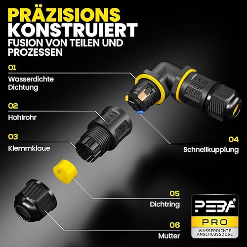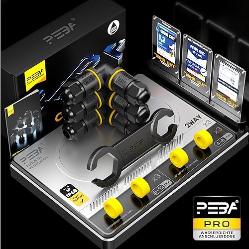 PEBA Kabelverbinder Wasserdicht 3 polig, IP68 Wasserdichte Kabelverbinder 4-12mm Kabeldurchmesser, Verteilerdose außen, 3-Leiter, Verbindungsklemme mit Hebel für Outdoor, 2 Stück Abzweigdose Schwarz
