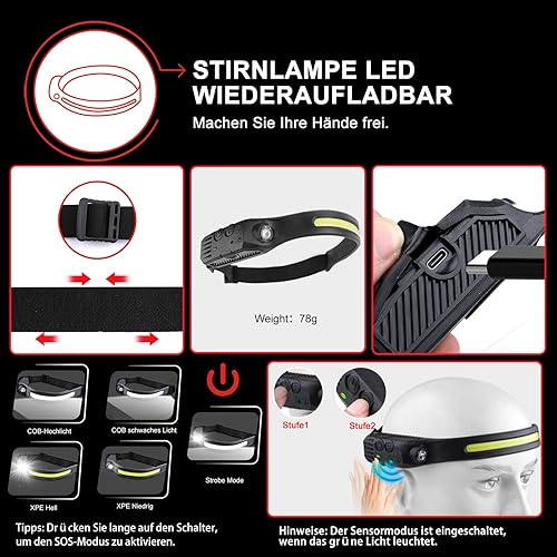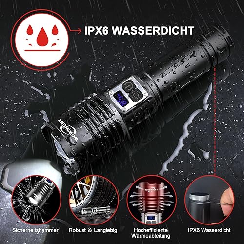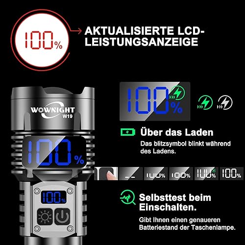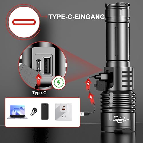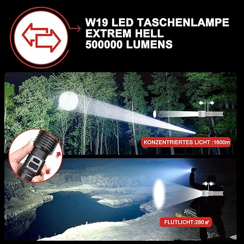 WOWNIGHT Taschenlampe LED Aufladbar 500000 Lumen, 2 Schalter LED Taschenlampe Extrem Hell USB C, Starke Taktische Taschenlampe Batteriebetrieben, Stufenlos Dimmbar Mit Stirnlampe For Outdoor Notfälle