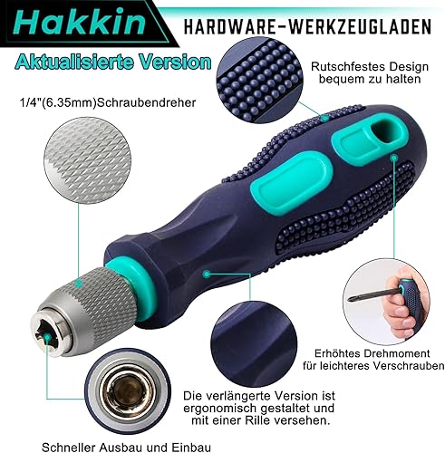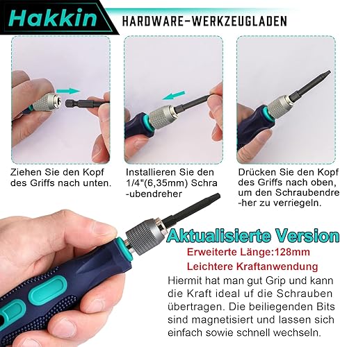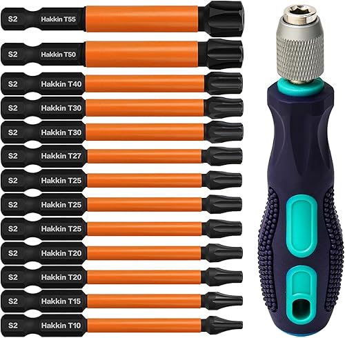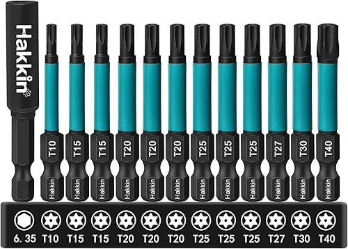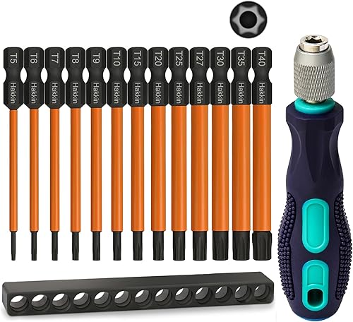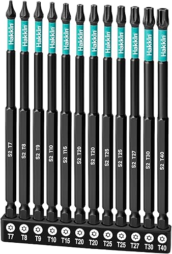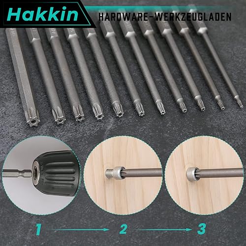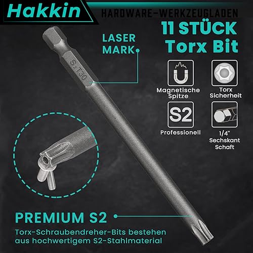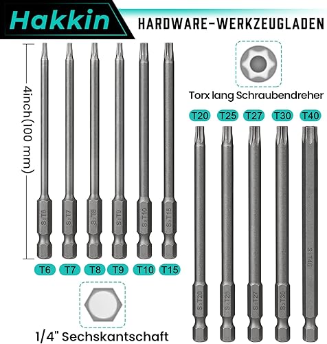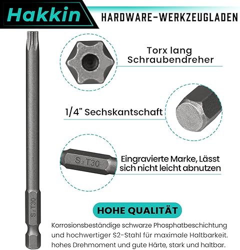 Hakkin 150 mm Torx Bits Set Lang 12 Stück Bitsatz für Akkuschrauber 1/4' S2 Torx Lange Bits Set mit Loch Torx Langer Schraubendreher Set Bitsatz Lang T7,T8,T9,T10,T15,T20,T25,T27,T30,T40