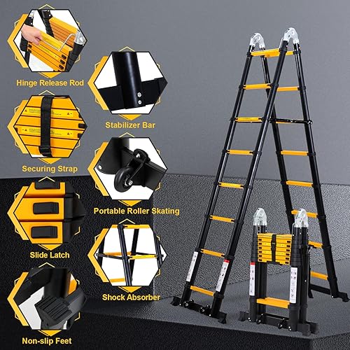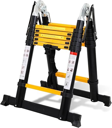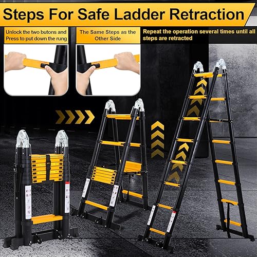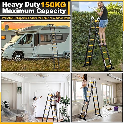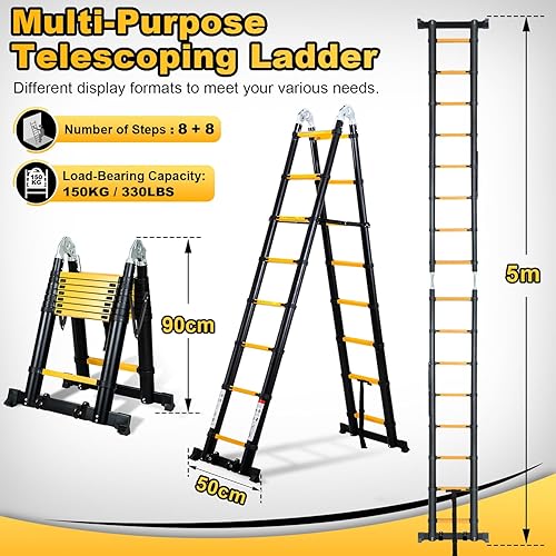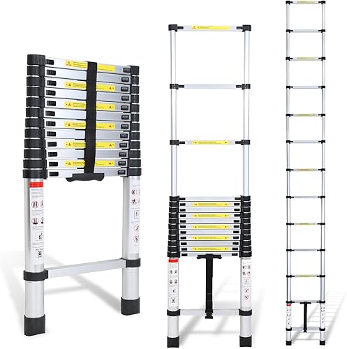 Cecaylie 3.2M Aluminium Teleskopleiter, Ausziehbar Ausziehbare Leiter mit Tragegriff,Rutschfester Mehrzweckleiter Max Belastung 150 kg Silber