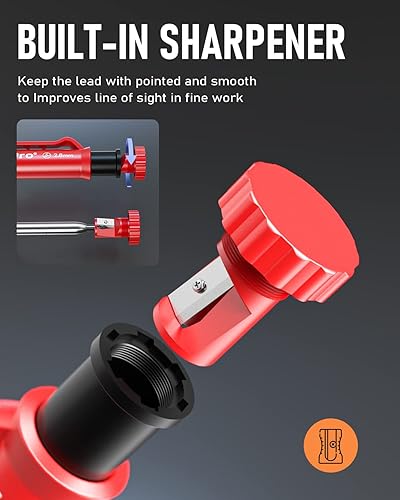 Nicpro 16 Stück Tischler Bleistifte Set, Solide Zimmermannsbleistifte mit 42 Vielseitige Minen, Druckbleistift Marker, Tieflochmarker Bleistift für Holzbearbeitung, Baustelle