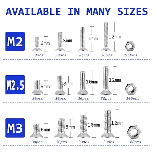 Loscrew M2 M2,5 M3 (insgesamt 660 Stück) Innensechskantschrauben mit Flachkopf, DIN7991 304 Edelstahl, Sechskantschrauben, 12 verschiedene Größen, Senkschrauben, Muttern und Bolzen, Sortiment-Set