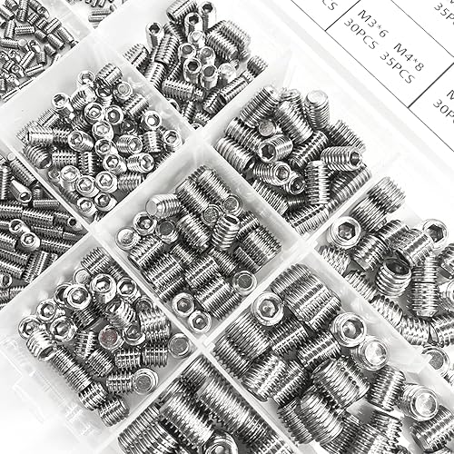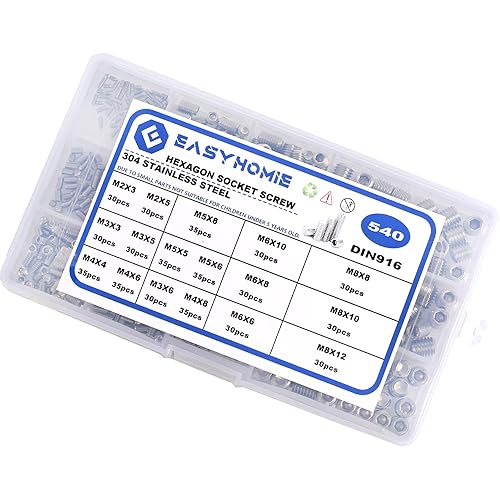 540 Stück Edelstahl Madenschrauben, M2/3/4/5/6/8 Innensechskant Gewindestifte mit 6 Schraubenschlüsseln und 1 Pinzette für Befestigung von Maschinenteilen