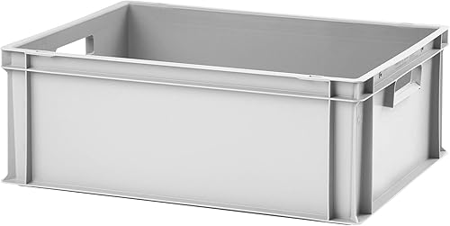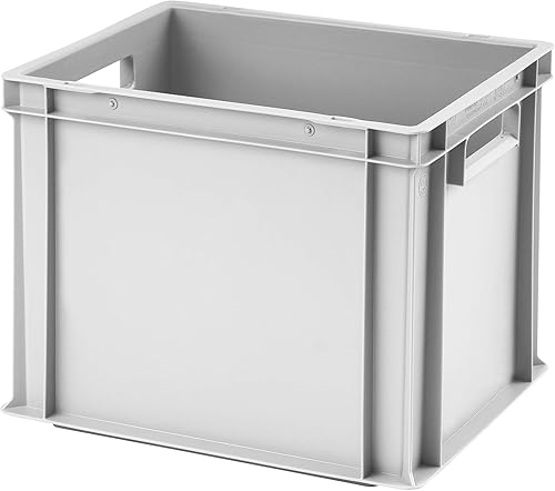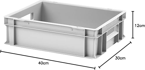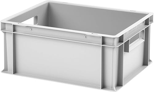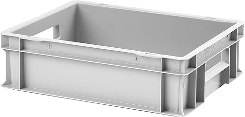 1a-TopStore Euro-Stapelbox EB-412, 400x300x120 mm (LxBxH), grau ähnl. RAL7001, aus Polypropylen, lebensmittelecht, 2 Handgriffe, ca. 11 Liter Vol.