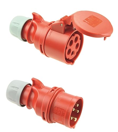 PCE SHARK IP44 CEE 16A 5p rot SET Stecker und Kupplung 5polig Starkstrom