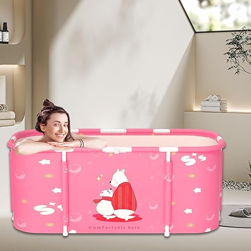 Sinbide Faltbare Badewanne Erwachsene faltbare Badewanne, tragbare und abnehmbare Badewanne, ideal für zu Hause Spa-Badewanne Viele Stile 115x60x55cm (LxBxH) Rosa